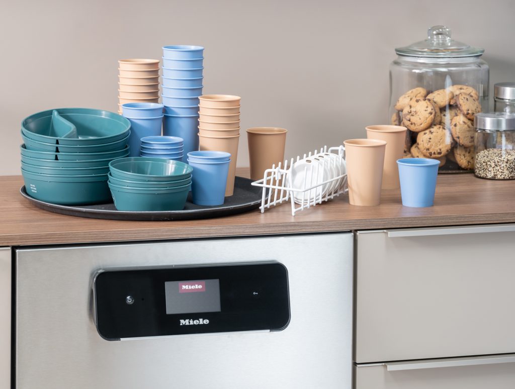 Mașinile de spălat vase profesionale cu alimentare cu apă proaspătă din seria MasterLine, conectate în rețea, funcționează de asemenea perfect cu Miele MOVE. Acestea curăță și usucă igienic vesela reutilizabilă, folosind apă proaspătă la fiecare ciclu și temperaturi ridicate pentru eliminarea murdăriei, virusurilor și bacteriilor. La fel ca mașinile de spălat rufe, modelele MasterLine au primit certificarea Virus Hygiene – eticheta de aur din partea Institutului pentru Igienă și Virologie Integrativă, pentru standardele ridicate de igienă în afara sectorului medical și pentru monitorizarea continuă a temperaturilor și a timpilor de menținere.