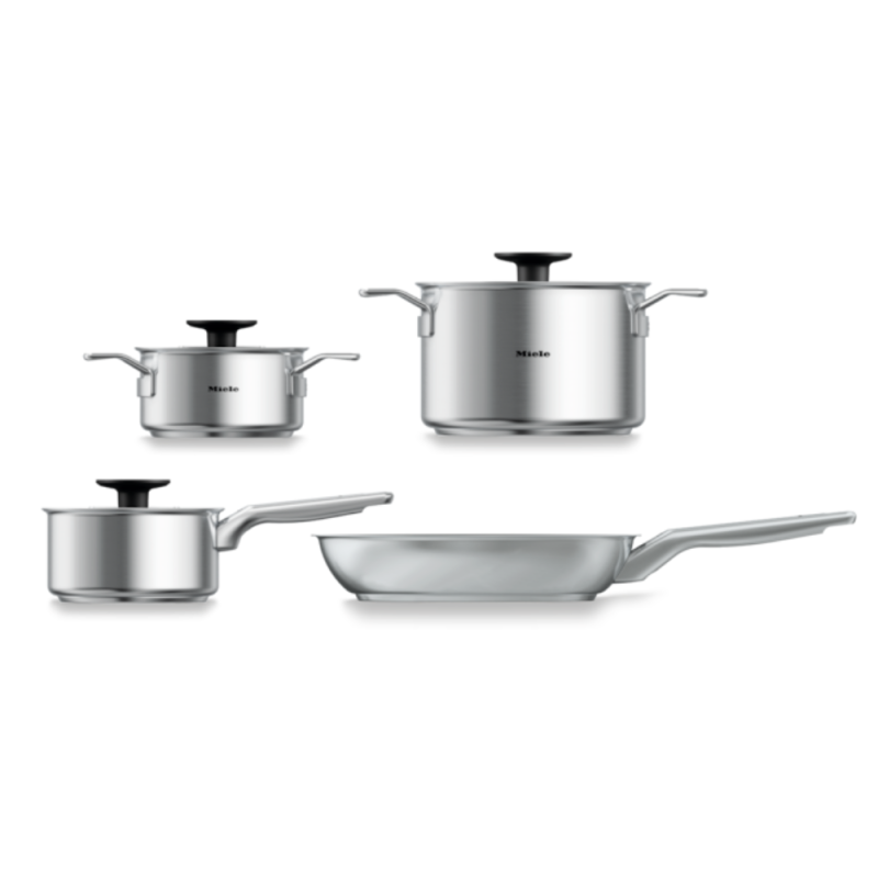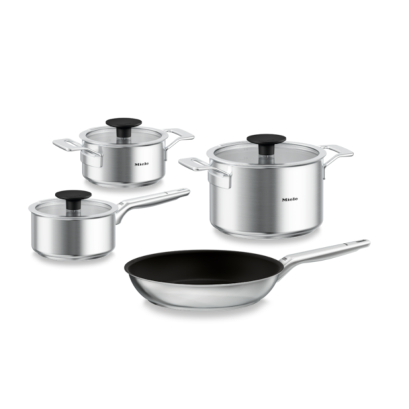Setul de tigăi Miele KMTS 5704-3 – Perfecțiune în bucătărie! Oțel inoxidabil de înaltă calitate, compatibilitate universală, capace inteligente, design ergonomic și întreținere simplă. Rezultate desăvârșite la fiecare preparat!