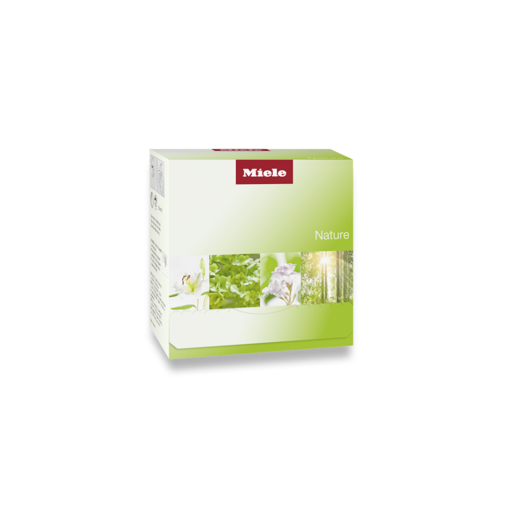 Flacon parfum Miele Nature pentru uscător, oferă prospețime naturală și delicată rufelor, fără balsam.