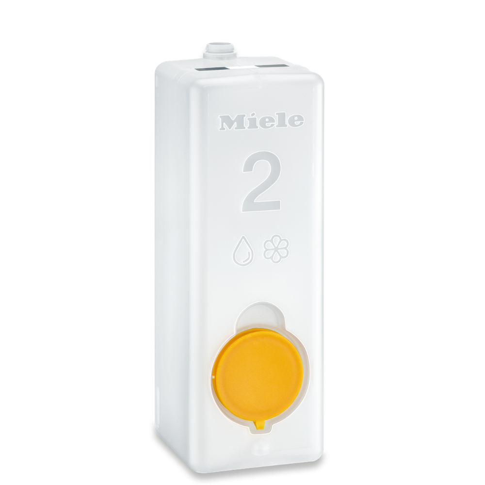 Cartuș gol Nr. 2 Miele, pentru umplerea detergentului TwinDos, asigură dozare precisă și utilizare confortabilă.