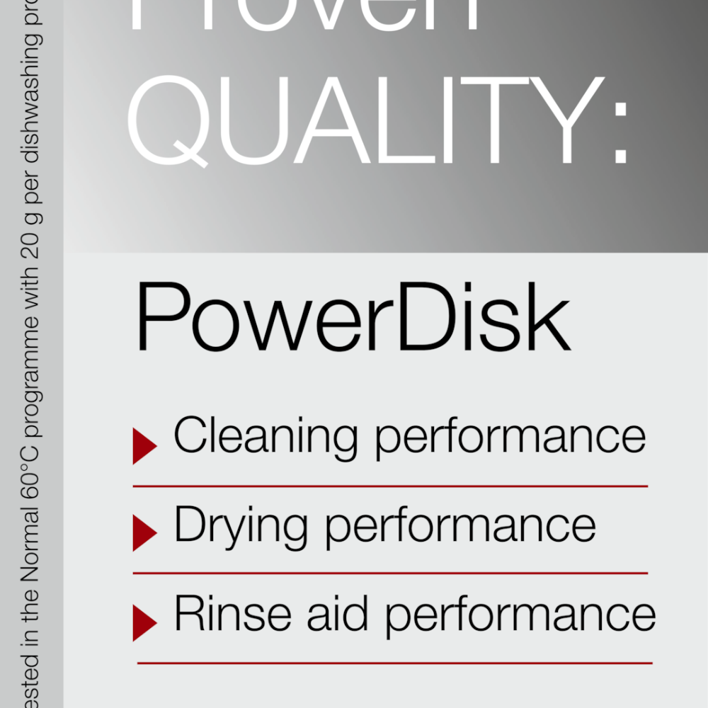 PowerDisk All in 1 este un detergent sub formă de pudră granulată cu oxigen activ, conceput pentru a oferi rezultate de spălare impecabile în mașinile de spălat vase Miele cu dozare automată. Asigură curățare temeinică, chiar și pentru murdăria persistentă, inclusiv la temperaturi scăzute, protejând în același timp paharele și vesela delicată.