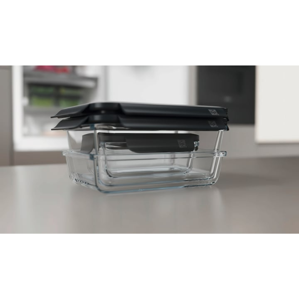 Recipient Miele Gourmet Box M (1 L), din sticlă borosilicată, pentru gătit, depozitare și organizare practică.