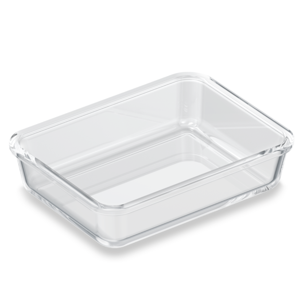Recipientul Gourmet Box M de 1 l este un recipient din sticlă borosilicată premium, conceput pentru gătit, depozitare și organizarea inteligentă a alimentelor. Datorită rezistenței la temperaturi între -30 °C și 260 °C, acest accesoriu permite utilizarea versatilă în frigider, congelator, cuptor sau cuptor cu microunde (fără capac), păstrând prospețimea și aroma alimentelor.
