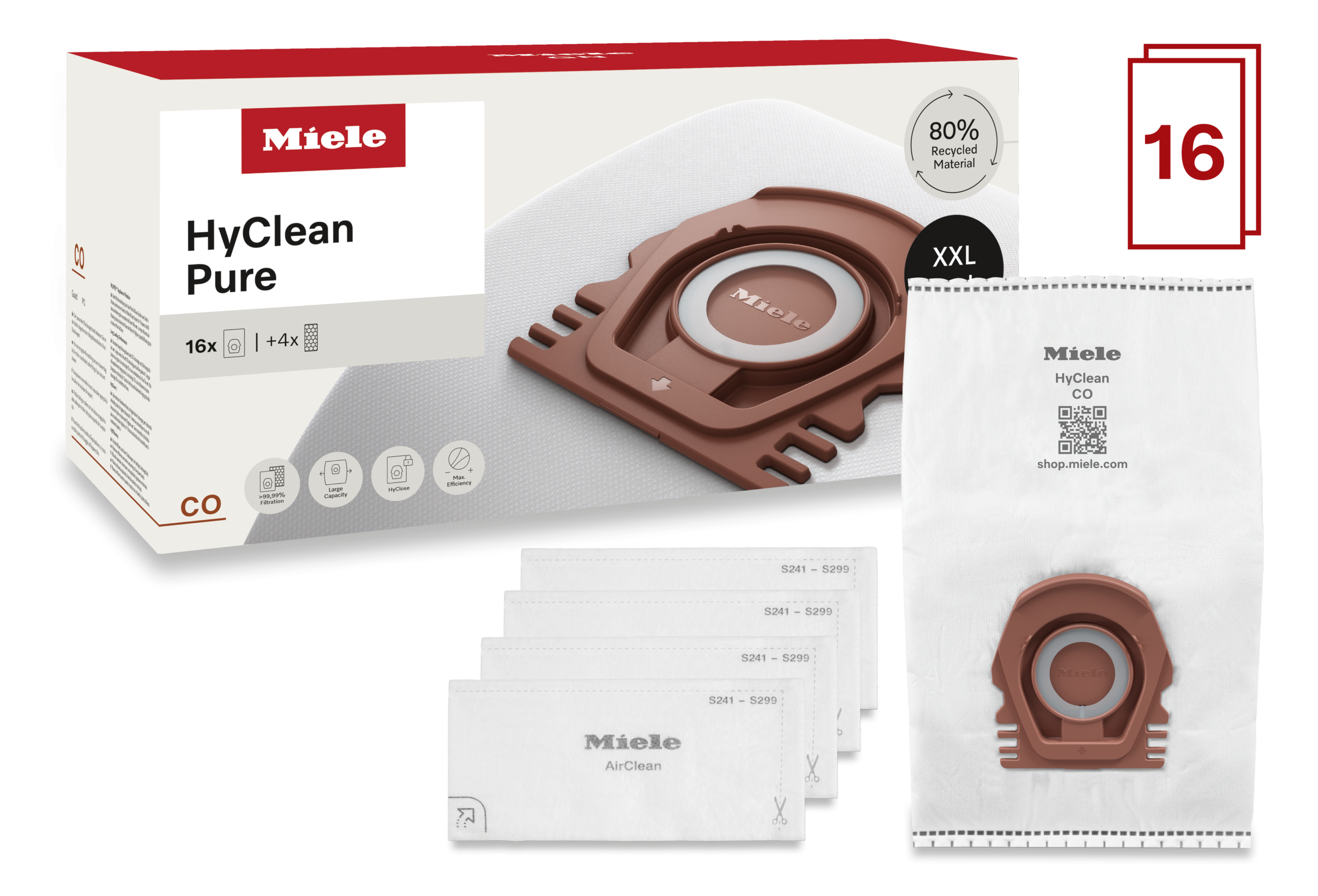 Setul CO XXL HyClean Pure oferă 16 saci de aspirator pentru modelele Guard M1. Realizate din material reciclat, asigură performanță revoluționară și durată lungă de viață. Tehnologia ComfortFit și colierul HyClose asigură igienă și fixare optimă. Include 4 filtre de evacuare.