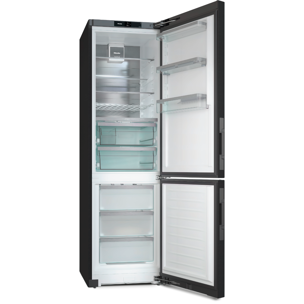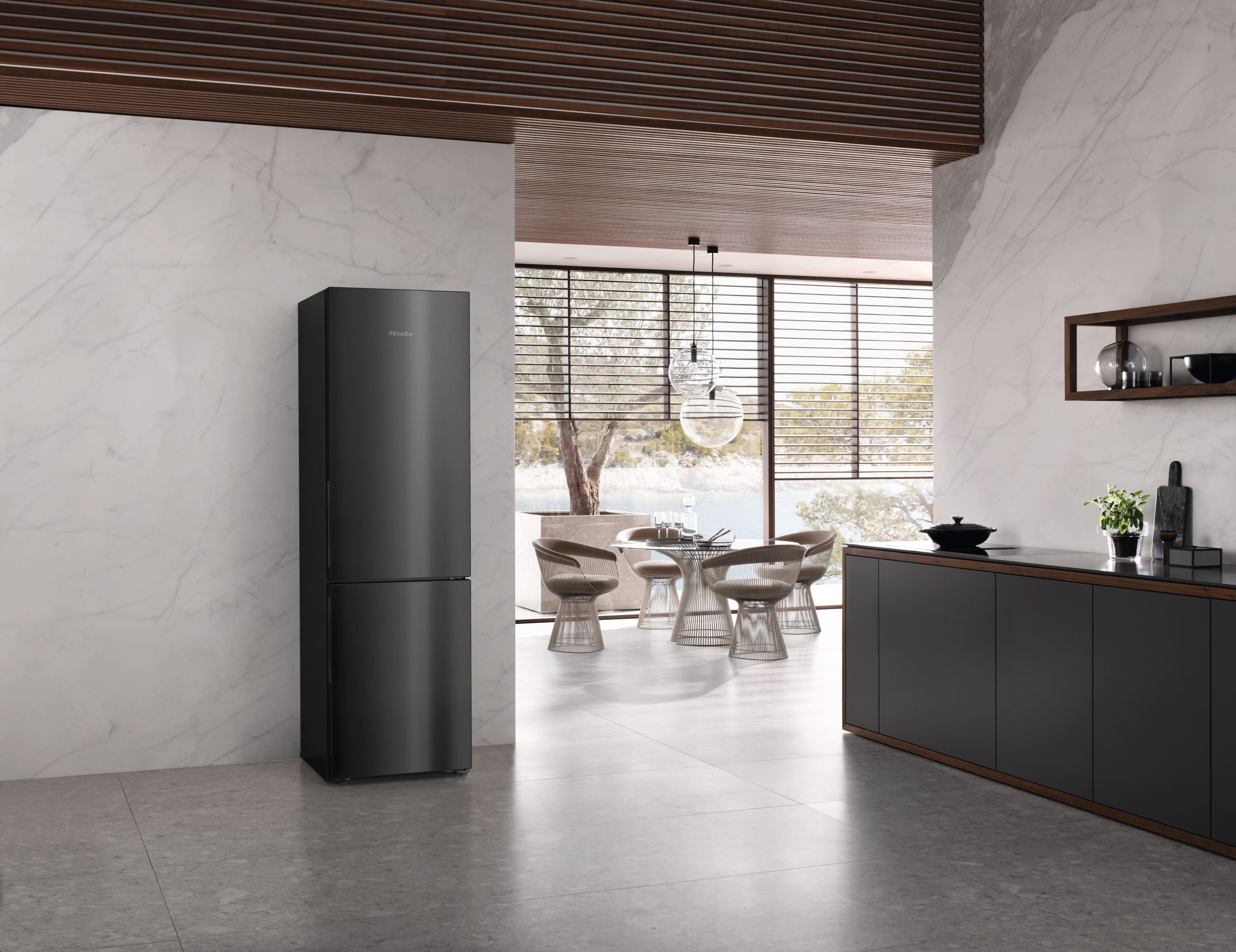 Combină frigorifică Miele 358L, PerfectFresh Active, NoFrost, BlackSteel, iluminare LED, premium și silențioasă.