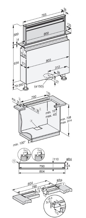 | Dimensiuni decupaj nișă în mm (lățime) pentru instalarea pe blatul de lucru | 815 |