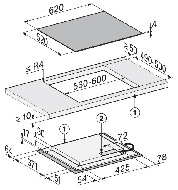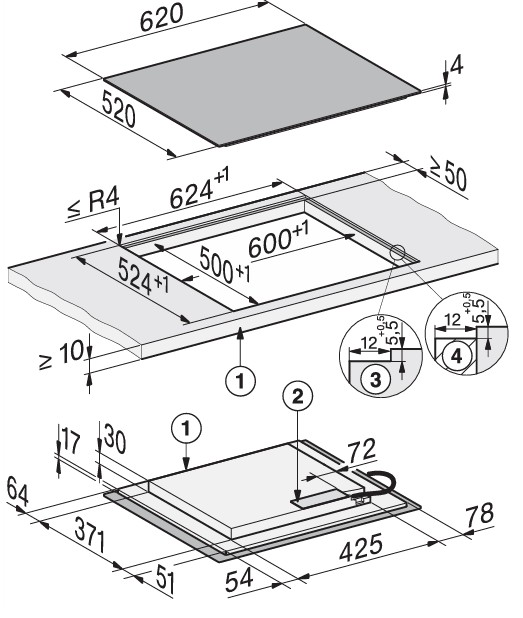 | Dimensiuni interioare nișă în mm (L x A) pentru instalare la nivel cu blatul de lucru | 600/624 x 500/524 |