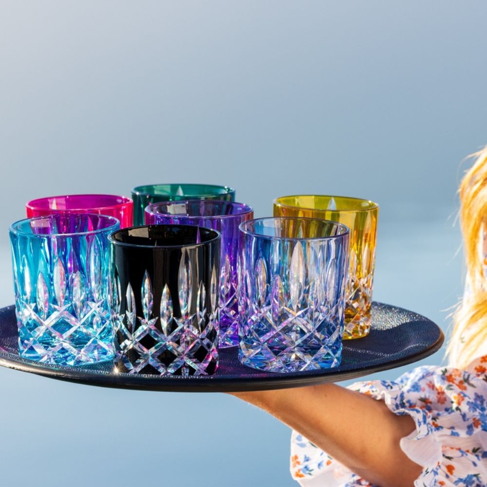 Paharul Tumbler impresionează prin designul său elegant, inspirat din formele clasice și reinterpretat într-o nuanță neagră modernă. Taieturile tip crystal cut creează reflexii spectaculoase ale luminii, oferind un aspect luxos și sofisticat. Forma sa clasică și proporțiile echilibrate îl fac potrivit pentru o gamă variată de băuturi, de la whisky până la cocktailuri sofisticate.