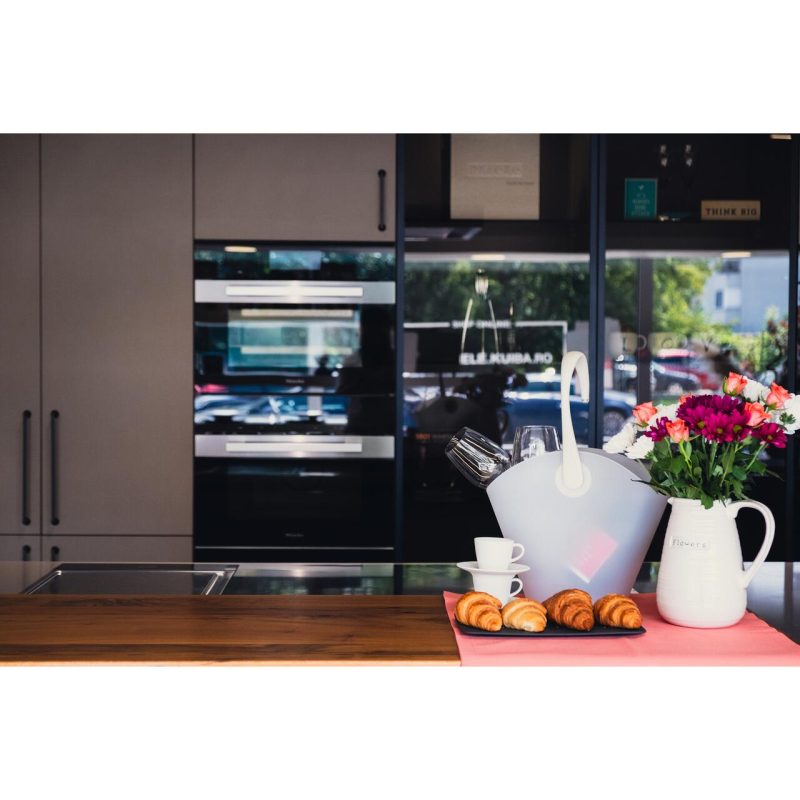 Bucătăria poate fi vizionată în showroomul Miele de pe Strada București nr. 55 (produsul expus poate prezenta urme de uzură).